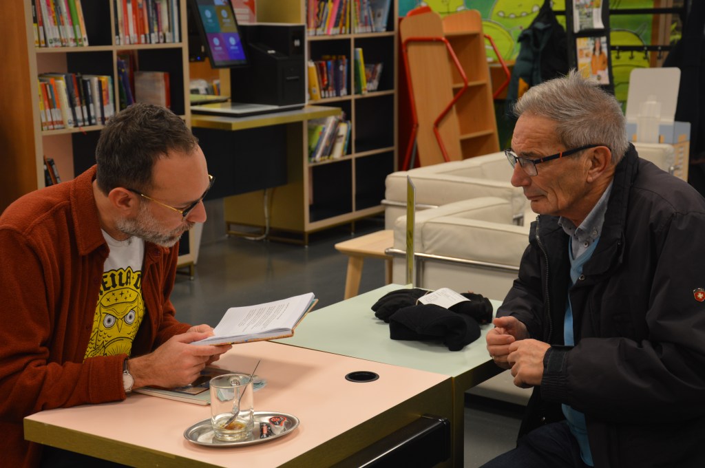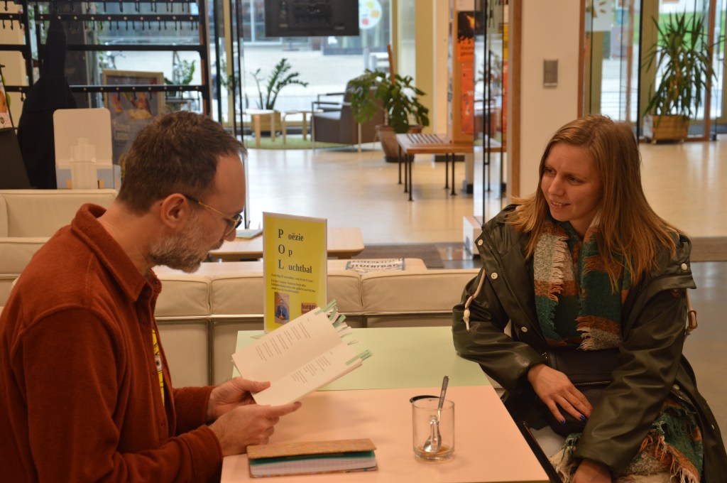 Ik ben het gewoon om mijn gedichten voor een publiek te brengen, maar dit was toch andere koek. Het voelde veel intiemer en dat was best prettig. De mensen die aan mijn tafeltje plaatsnamen, luisterden stuk voor stuk met volle aandacht. Ik heb poëzie gelezen voor zeventigplussers, leerkrachten, jonge ouders, jongeren … De een had genoeg met een one minute poetry shot, de ander bleef gezellig nakeuvelen.